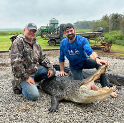 CONGRATULATIONS TO THIS GEORGIA/FLORIDA GUEST ON HARVESTING THE GROUP'S BIGGEST GATOR